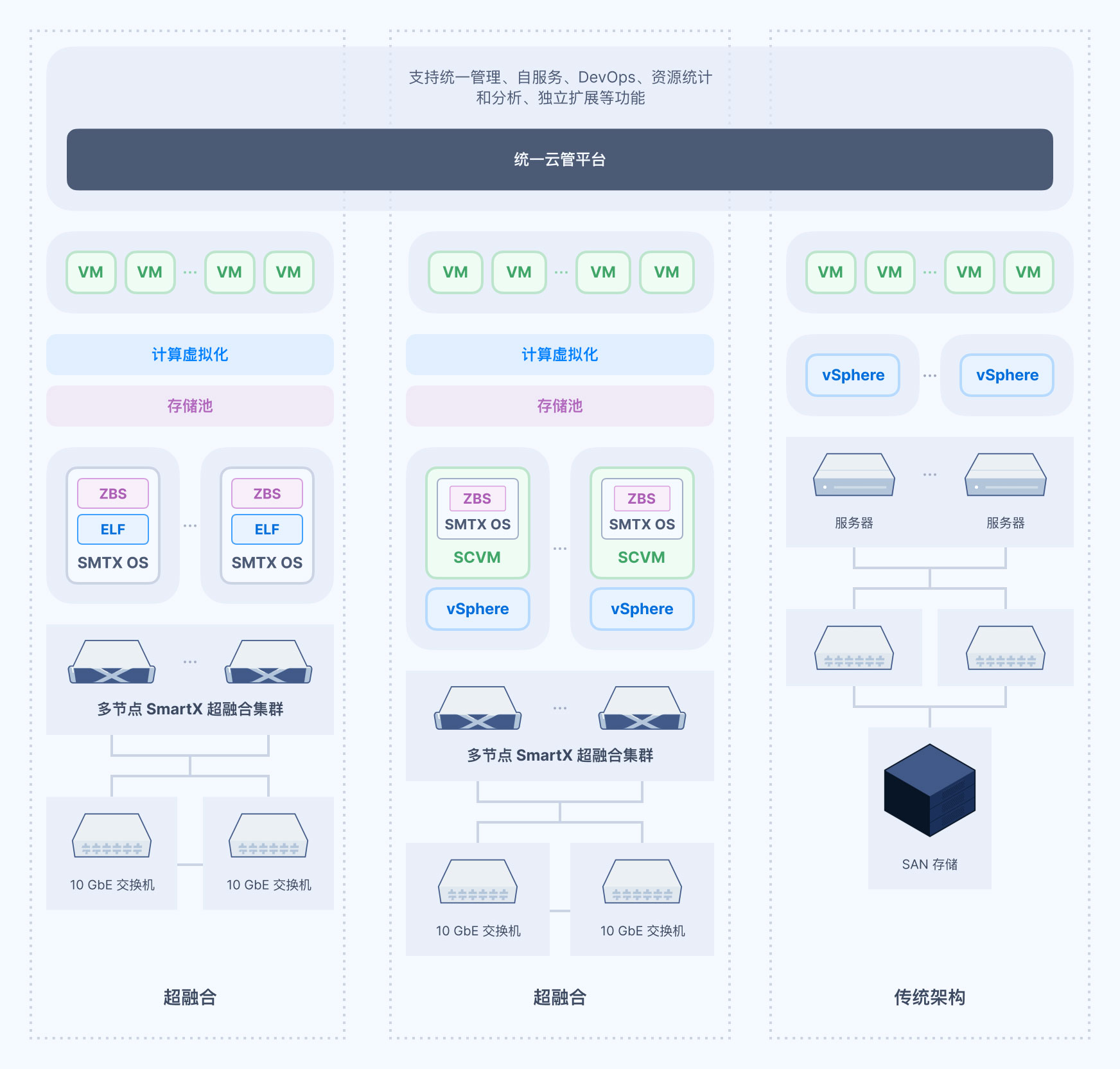 邁諾智能所采用的的SmartX方案已經(jīng)和國內(nèi)多家主流第三方 CMP (云管理平臺(tái)) 實(shí)現(xiàn)產(chǎn)品對接和驗(yàn)證,以穩(wěn)定可靠、性能卓越的超融合系統(tǒng)為基礎(chǔ),再輔以統(tǒng)一納管所有資源的 CMP,助力企業(yè)輕松構(gòu)建生產(chǎn)就緒的私有云基礎(chǔ)設(shè)施。